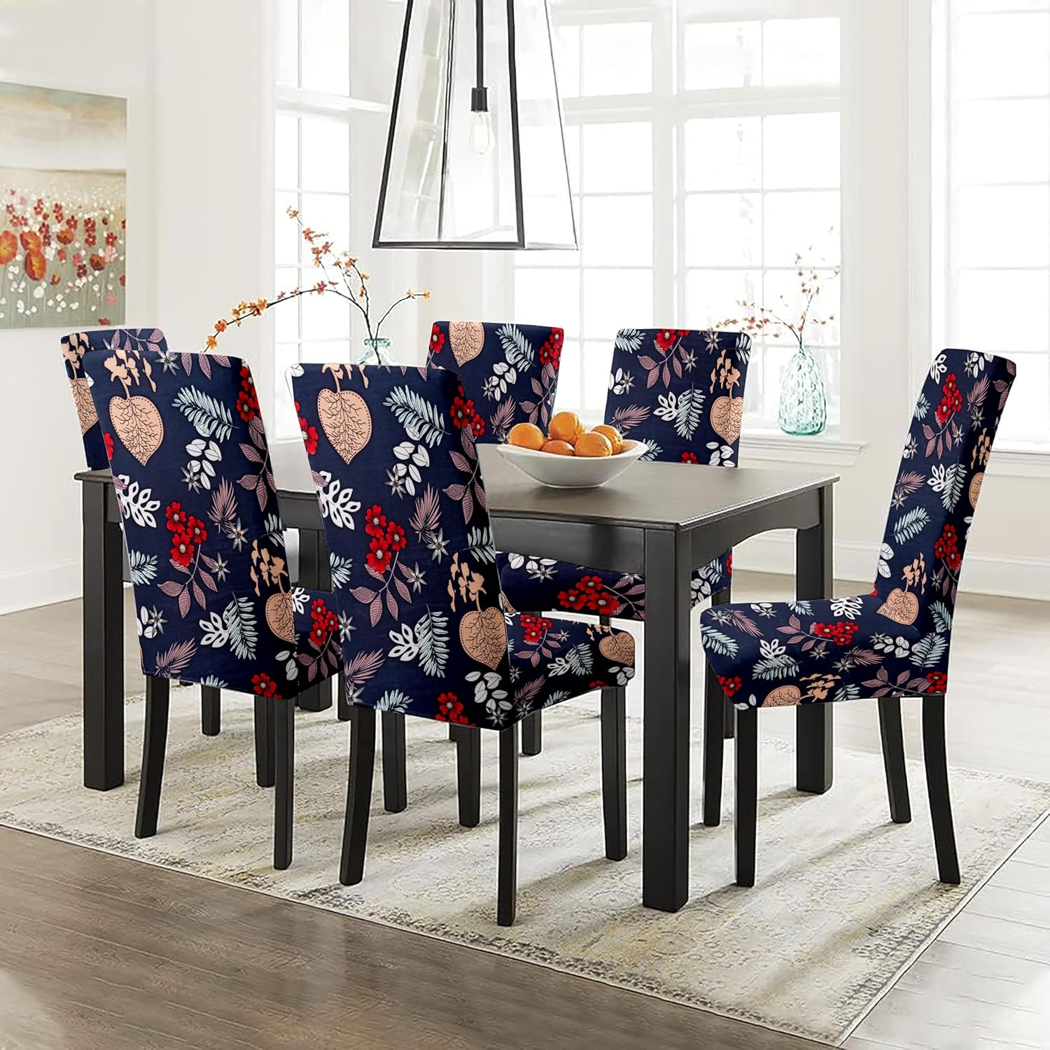 This HOTKEI dining chair cover is designed to fit dining chairs without armrests, offering perfect protection from stains, dirt, and damages. Made of high-quality fabric, it features a two-way stretchy and luxurious feel. The elastic band at the ends ensures a secure fit, and the cover is easy to install and remove. The elastic edge on the bottom holds the chairback back cover securely in place. The chair cover is machine washable, making it suitable for various settings, including living rooms, weddings, banquets, hotels, and meetings.