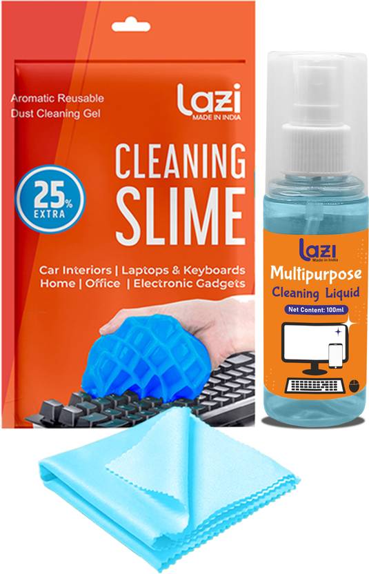 This kit comes with a laptop cleaner liquid, a microfiber cloth, and a keyboard cleaning gel (100 gm). The universal cleaning gel can be used on keyboards, computers, laptops, and other electronic gadgets to effectively clean dirt. Additionally, the multipurpose screen cleaning liquid is perfect for keeping screens on laptops, PCs, and TVs clean. The cleaning gel is especially useful for removing dust from keyboard gaps, leaving your devices looking like new. Use the included laptop screen cleaning liquid spray and cloth to easily clean dirt, dust, fingerprints, and smudges from screens. For those tough-to-clean areas, the LAZI combo also includes a high-tech cleaning gel that easily removes dirt and kills germs. This screen cleaner is gentle and works well with the ultra-soft microfiber cloth, leaving no residue behind. Whether your device is a laptop, PC, TV, or any other electronic screen, this multipurpose spray and cloth will provide a thorough and polished effect. The cleaning gel is also versatile